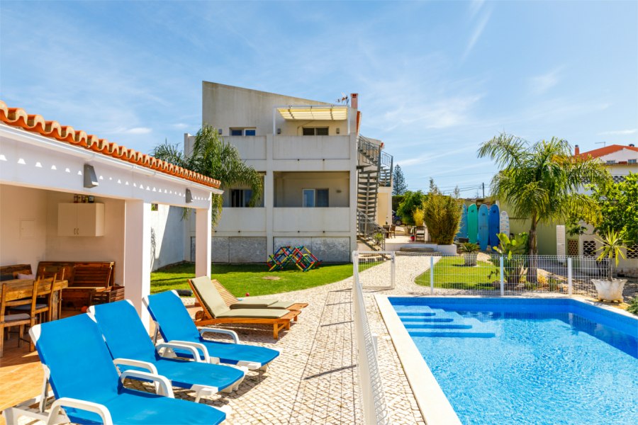 Das Familien Surfcamp an der Algarve liegt am Stadtrand des Städtchens Lagos mit seinen malerischen Stränden, unzähligen Cafés und Restaurants, Bars und vielen weiteren Unterhaltungsmöglichkeiten. Der lange Sandstrand von Port Mos ist in 4 Minuten mit dem Auto und in ca. 20 Minuten zu Fuß erreichbar. Das Meer ist schon von dem Balkon aus zu sehen. Auch die idyllischen Strände und Klippen um den Ponta de Piedade und Praia da Luz sind sehr schnell erreichbar. Der große Supermarkt Intermarché ist eine Straße weiter.