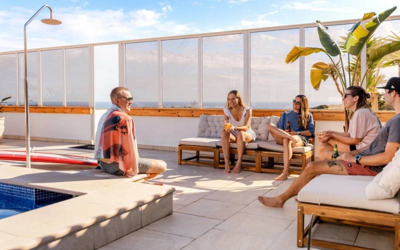 Nach einem intensiven Surftag habt ihr die Möglichkeit, die hauseigene Bar mit Zapfanlage zu nutzen und euch über die letzten Surferlebnisse auszutauschen. Bettwäsche, Handtücher und alle notwendigen Kleinigkeiten sind selbstverständlich vorhanden. Die Atmosphäre ist sehr entspannt und durch die exklusiv kleinen Gruppen von max. 15 -17 Personen ist absolutes relaxen zu 100% gewährleistet. Das Grundstück und der Pool sind groß genug, dass man gemütlich zusammensitzen kann oder sein eigenes Plätzchen zum Entspannen findet.