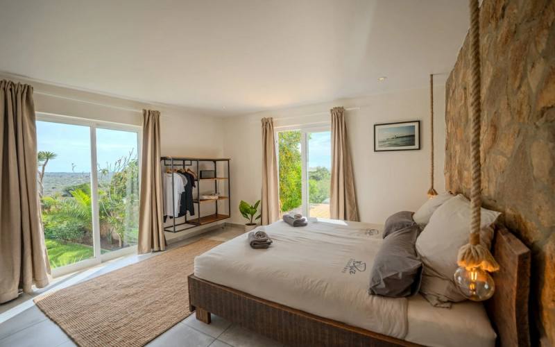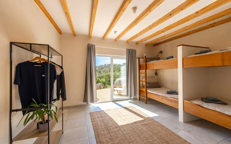 Nebenan gibt es noch ein weiteres Surfhouse. Das ruhige Surfhouse verfügt über Doppel- 4er & 2er Zimmer! Das sehr geräumige 4er Zimmer verfügt über einen großes Bad, ein Doppel- und ein Stockbett. Ihr könnt das Zimmer bettenweise oder exklusiv mit der Familie oder Freunden buchen. Die beiden 2er Zimmer überzeugen mit eigenem Balkon und Meerblick. Das eine Zimmer hat ein Stockbett und das andere ein Doppelbett. Beide 2er Zimmer teilen sich den Sea-View-Balkon sowie das Bad.